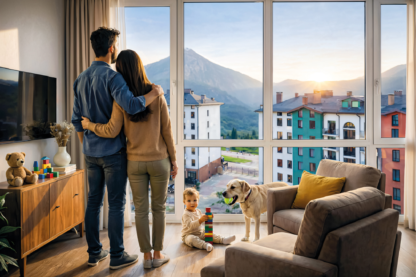 Продуманные планировки, в которых много света и воздуха. Панорамное остекление и виды на горные пейзажи, кухни-гостиные до 28 м², гардеробные и открытые балконы.